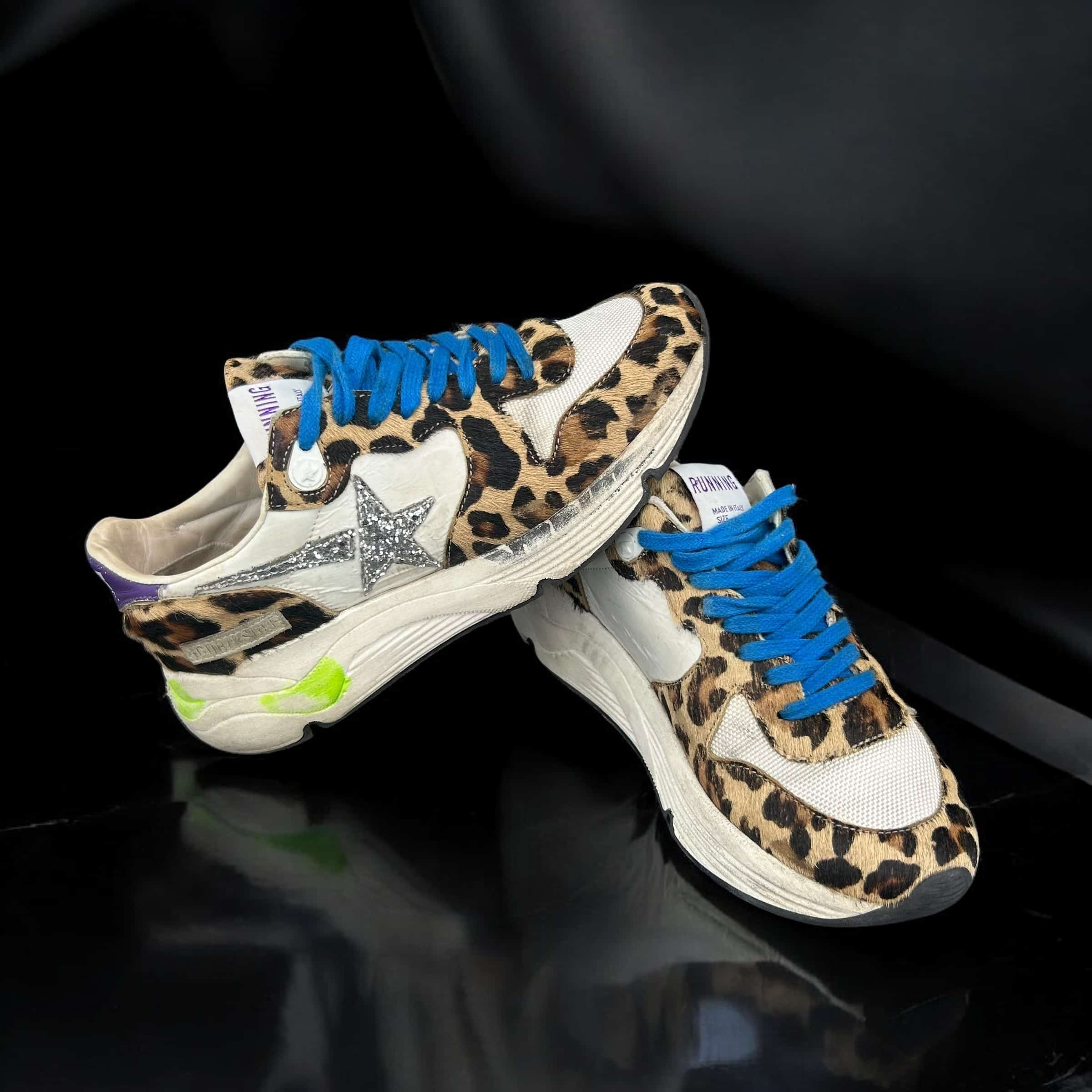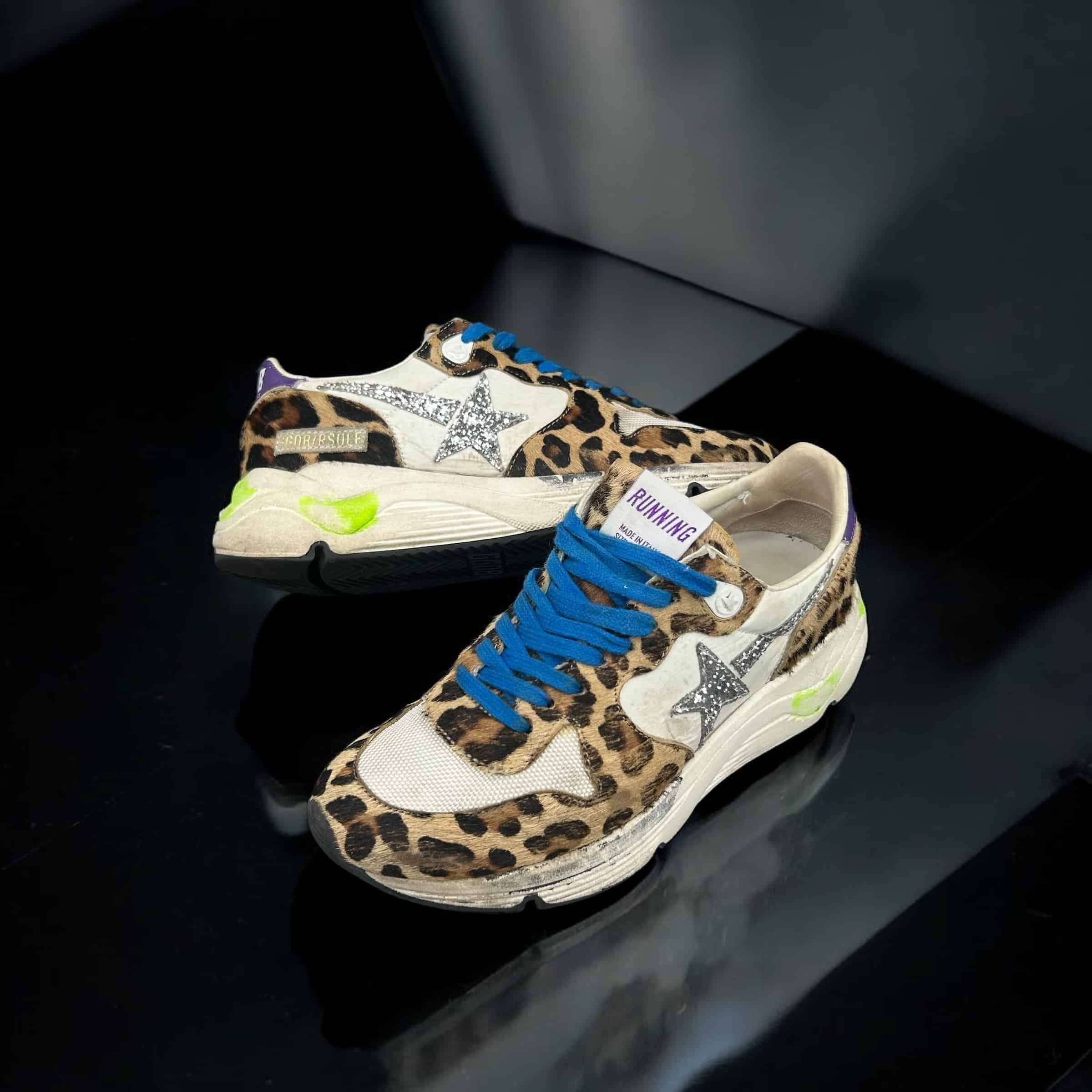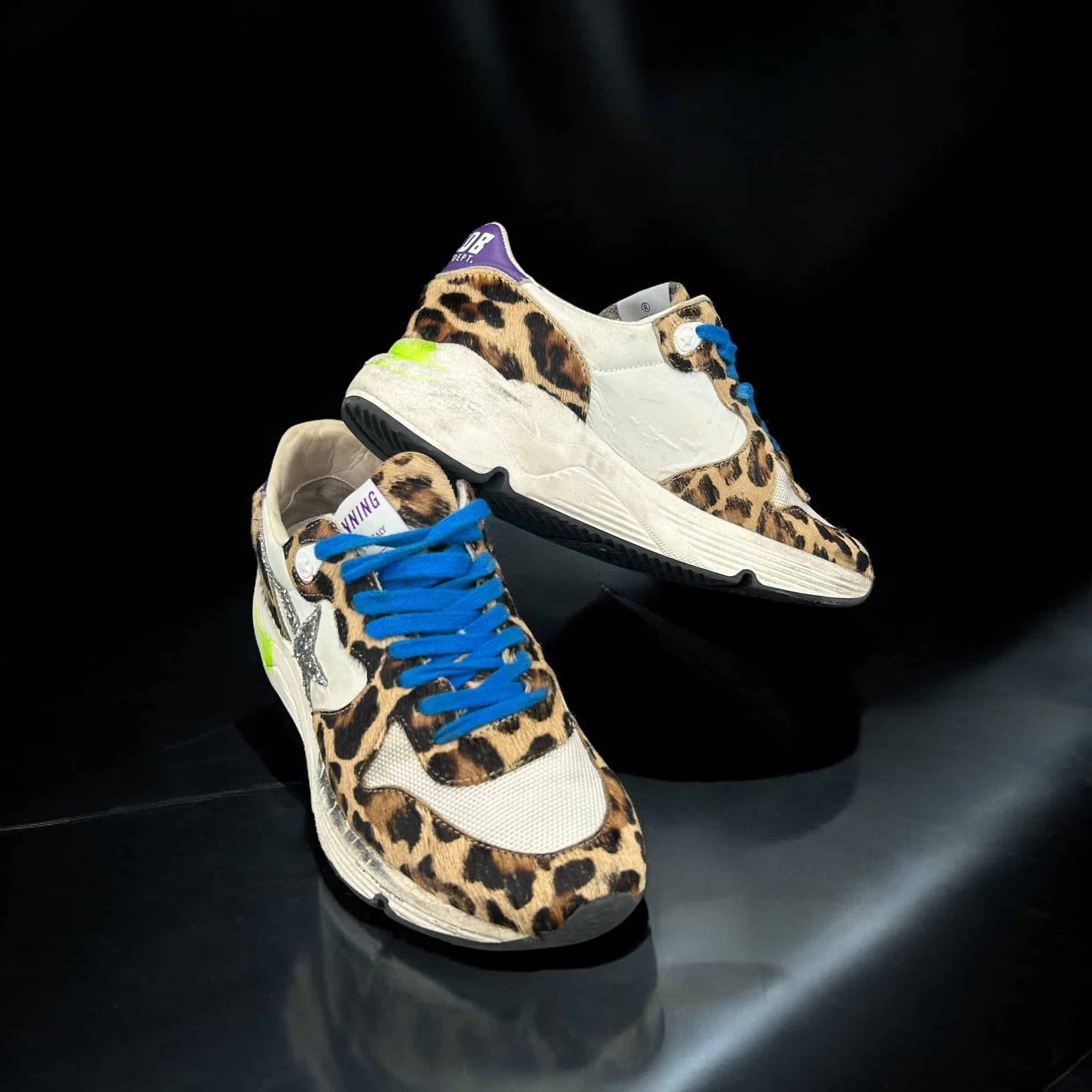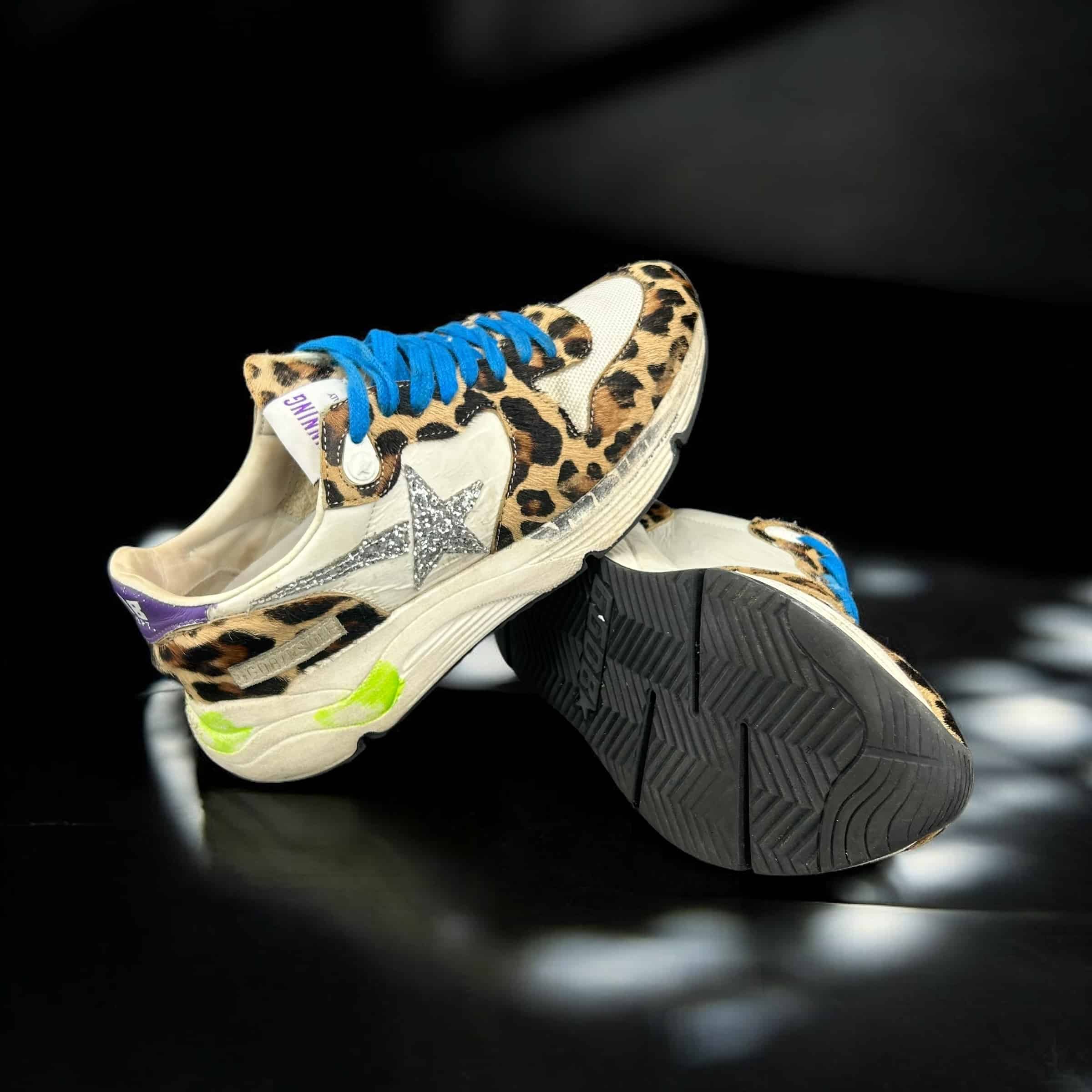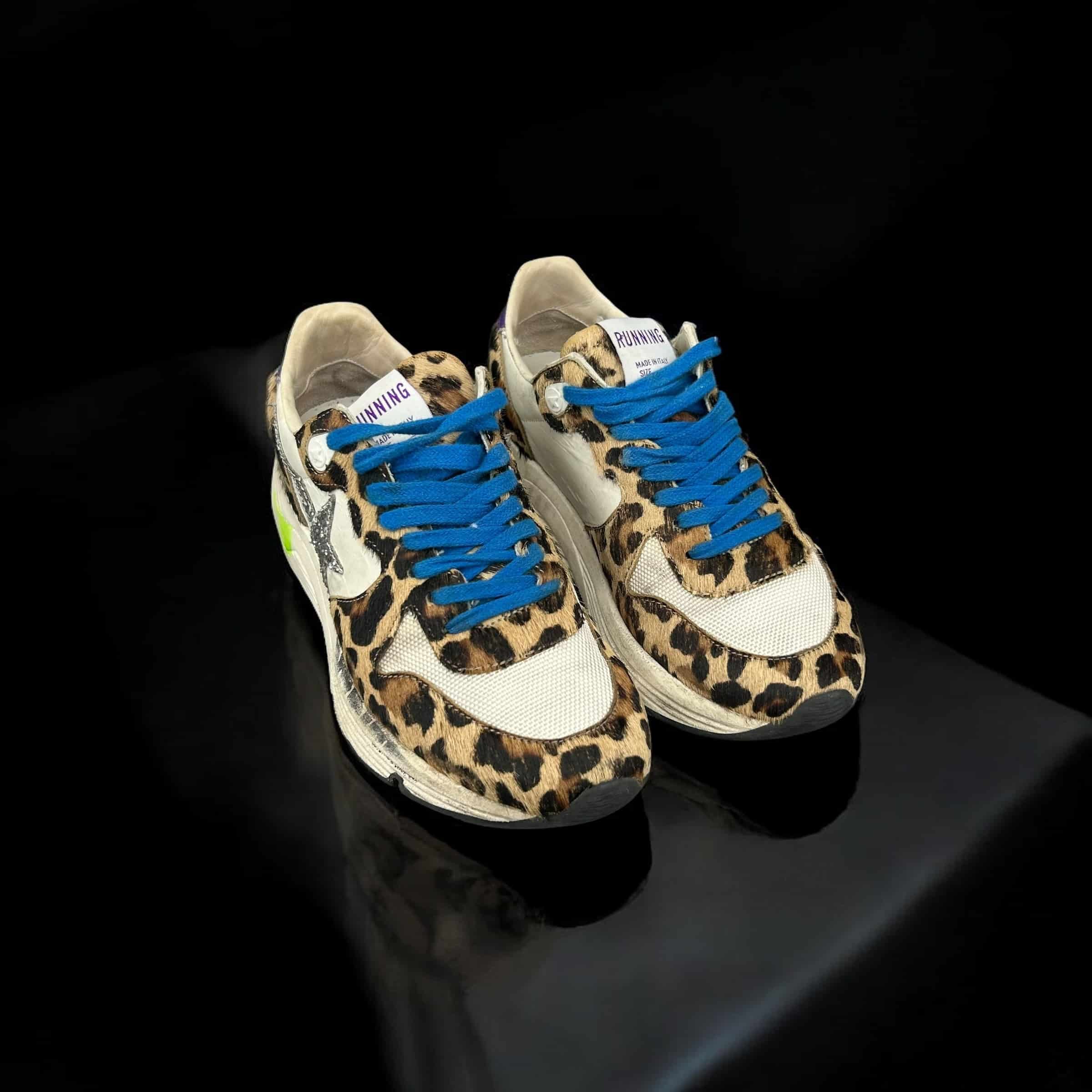 8766 Golden Goose Running Blanc/Léopard/Bleu 35