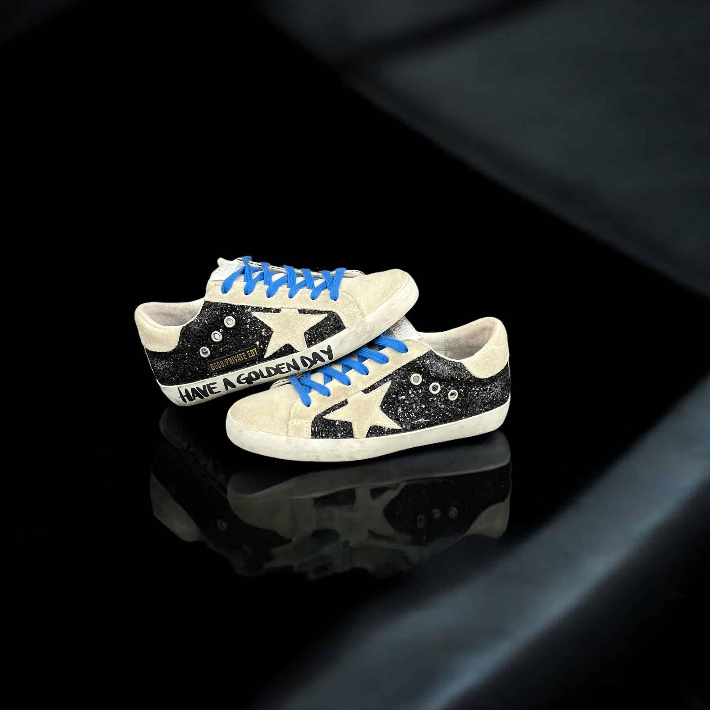 9348 Golden Goose Superstar Noir/Paillette/Beige/Bleu 36