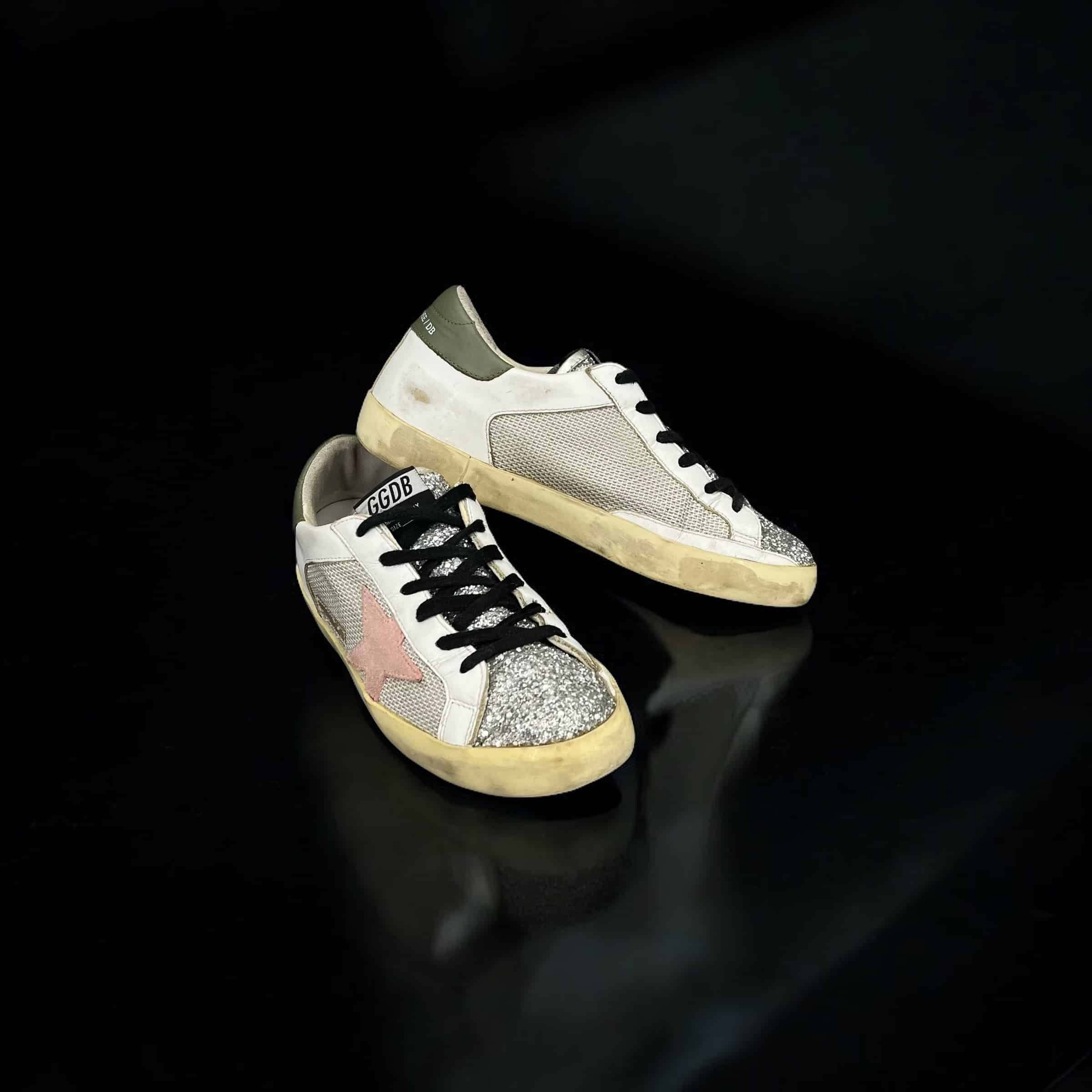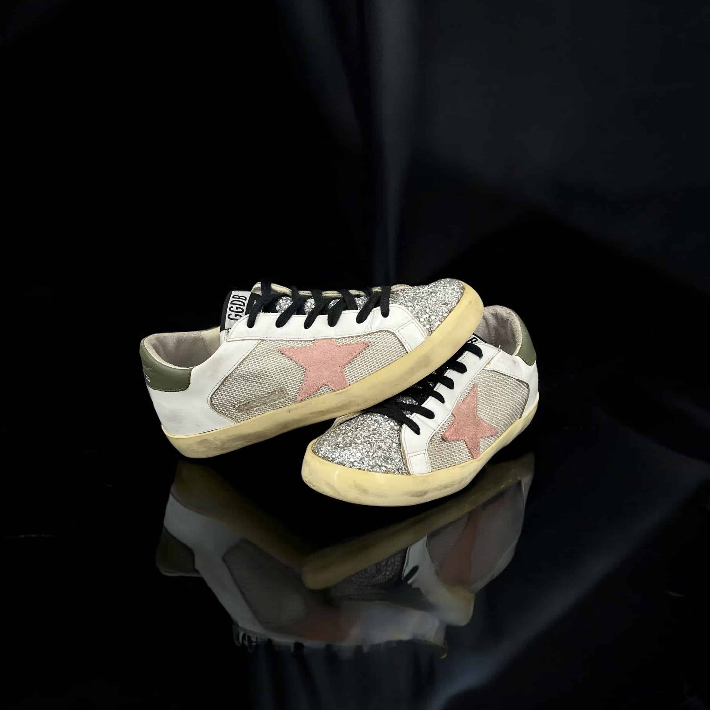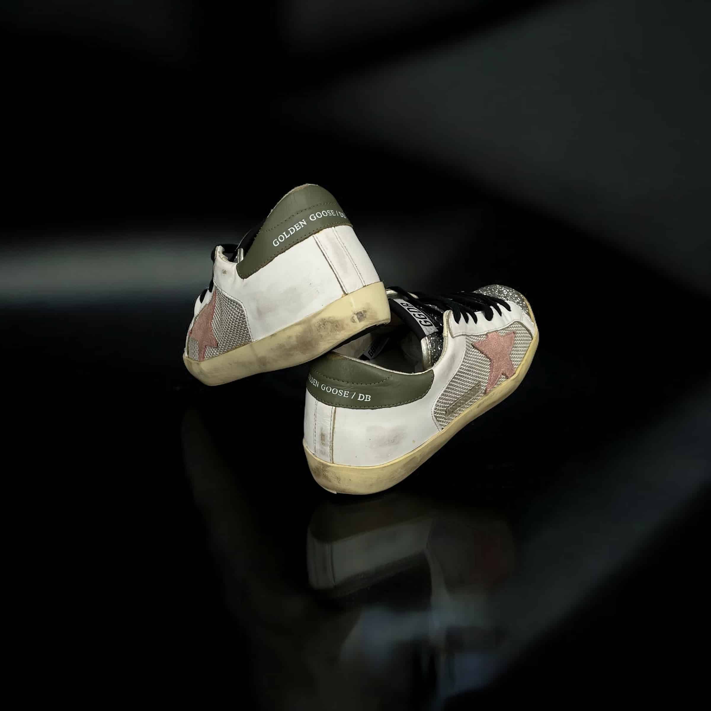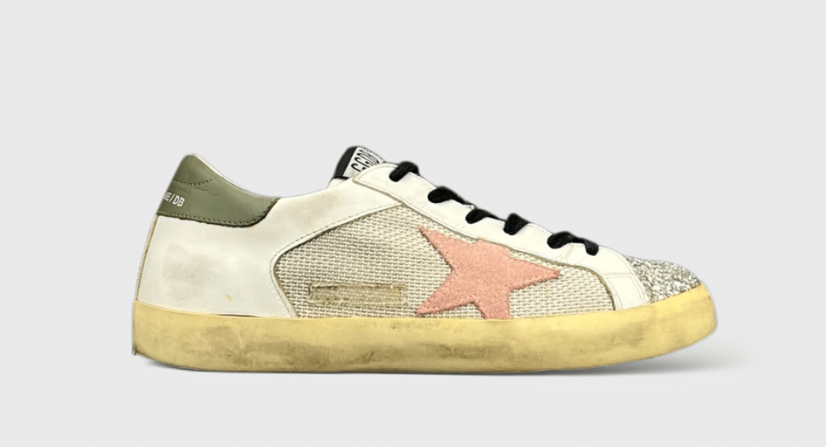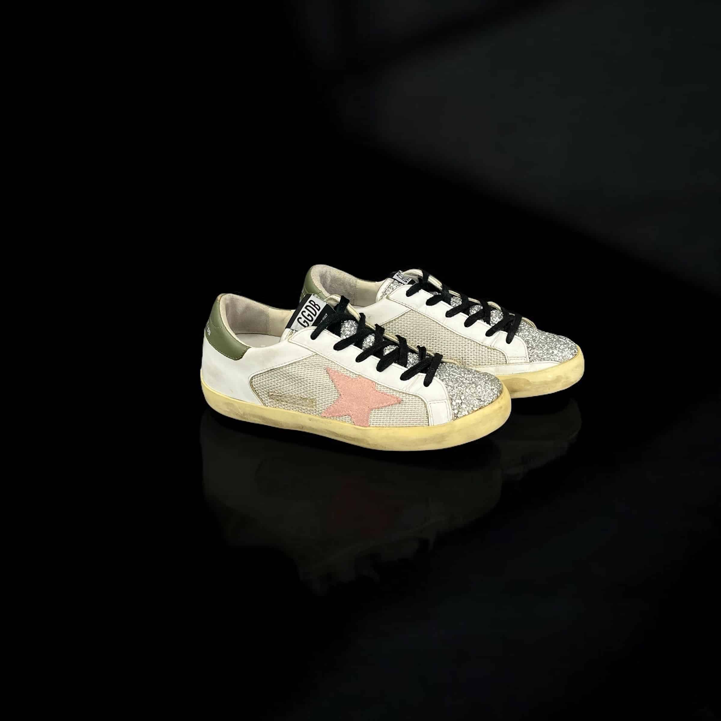 9411 Golden Goose Superstar Blanc/Kaki/Rose/Paillette/Argenté 37