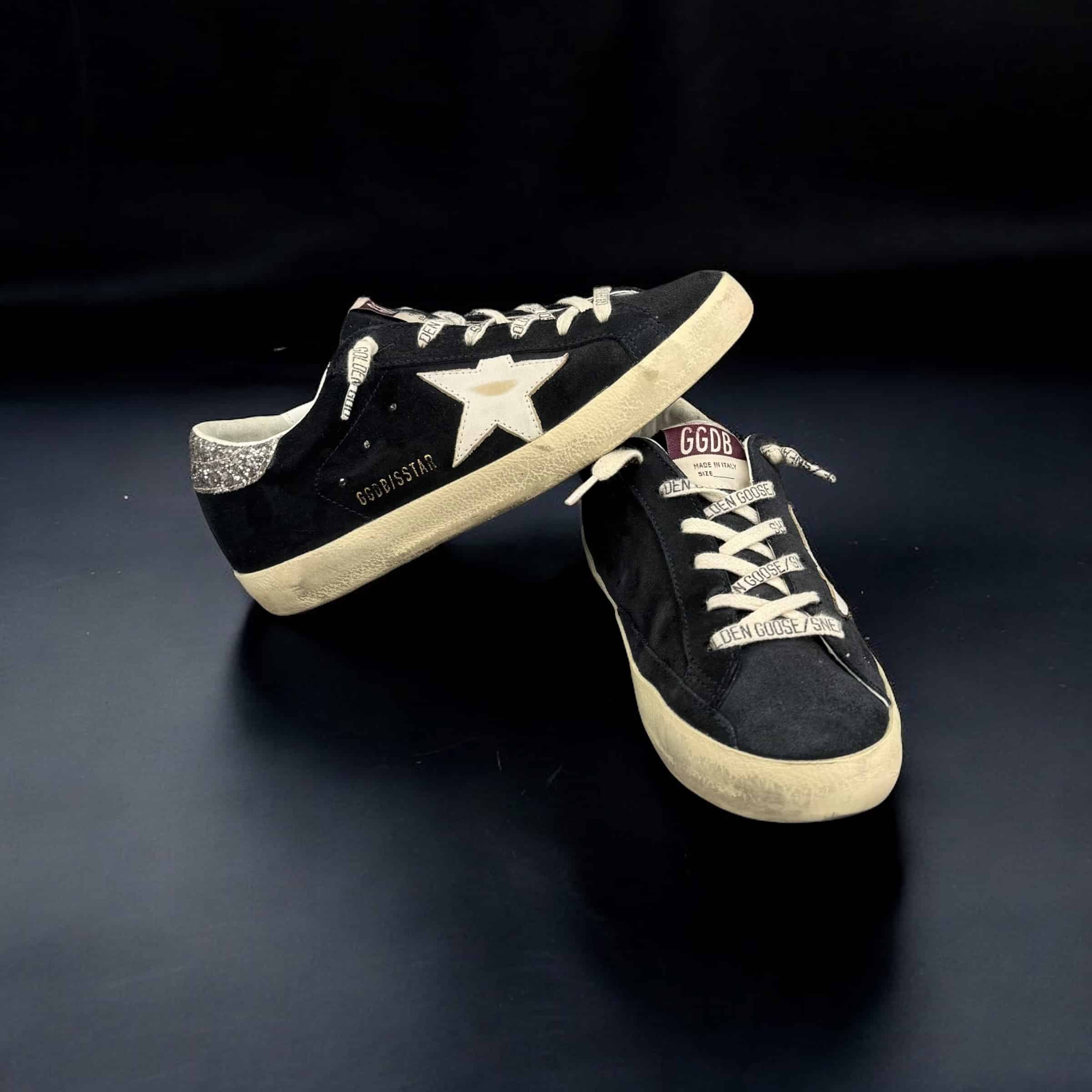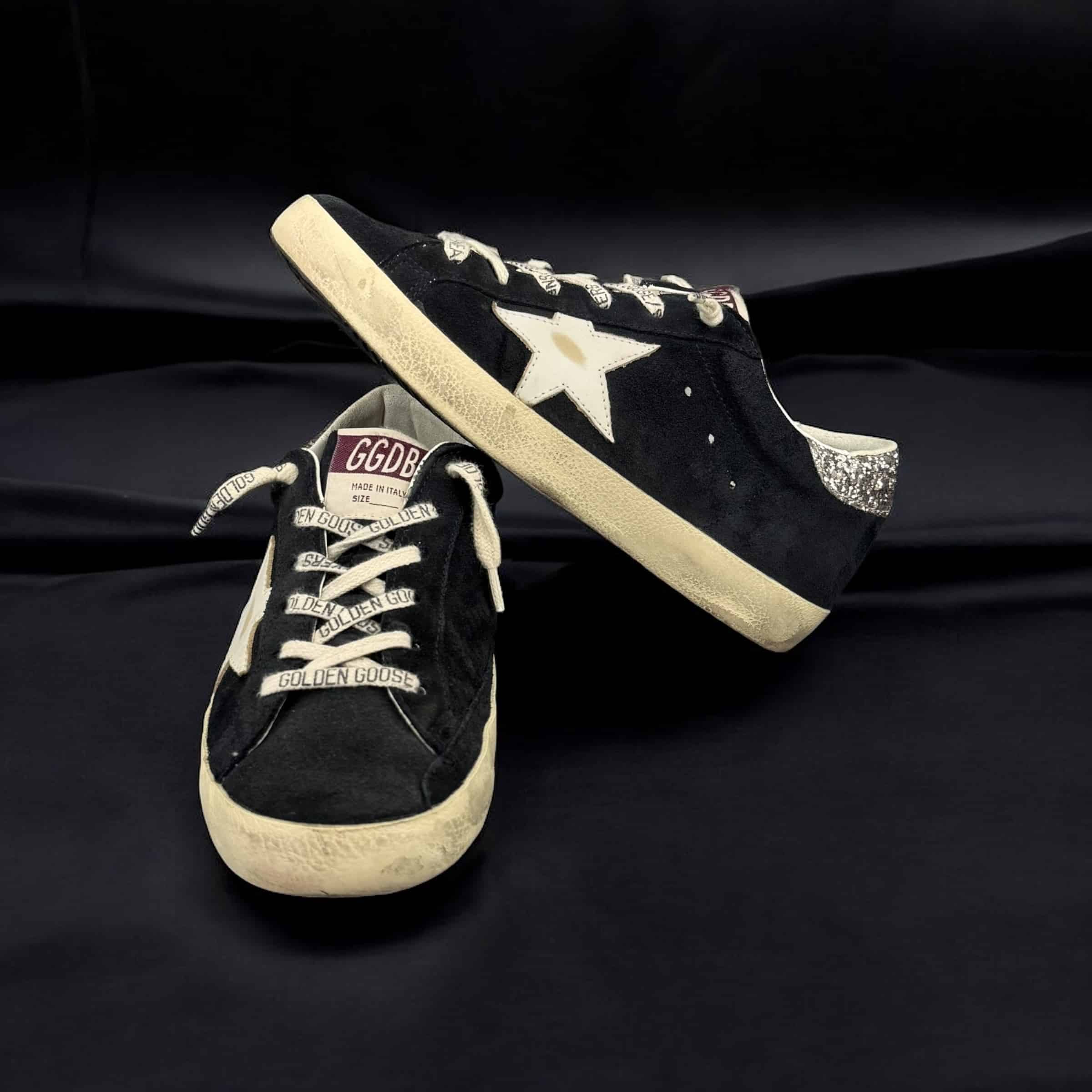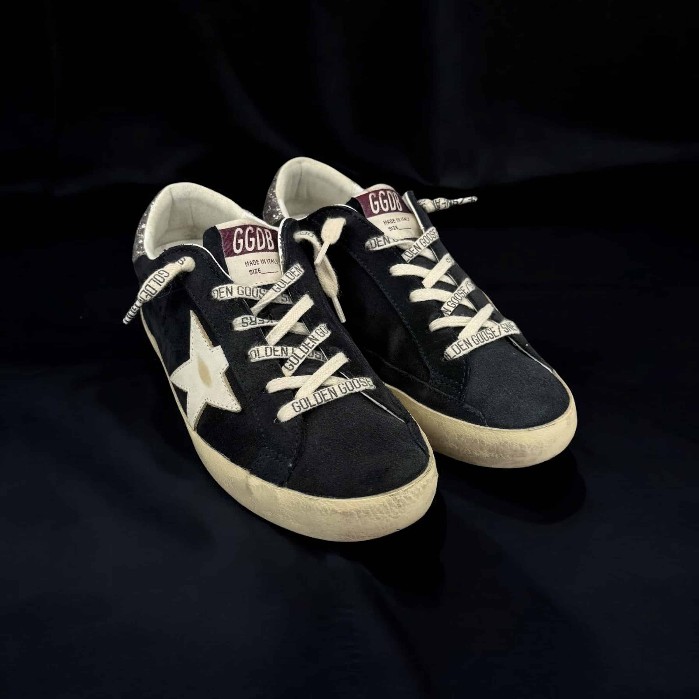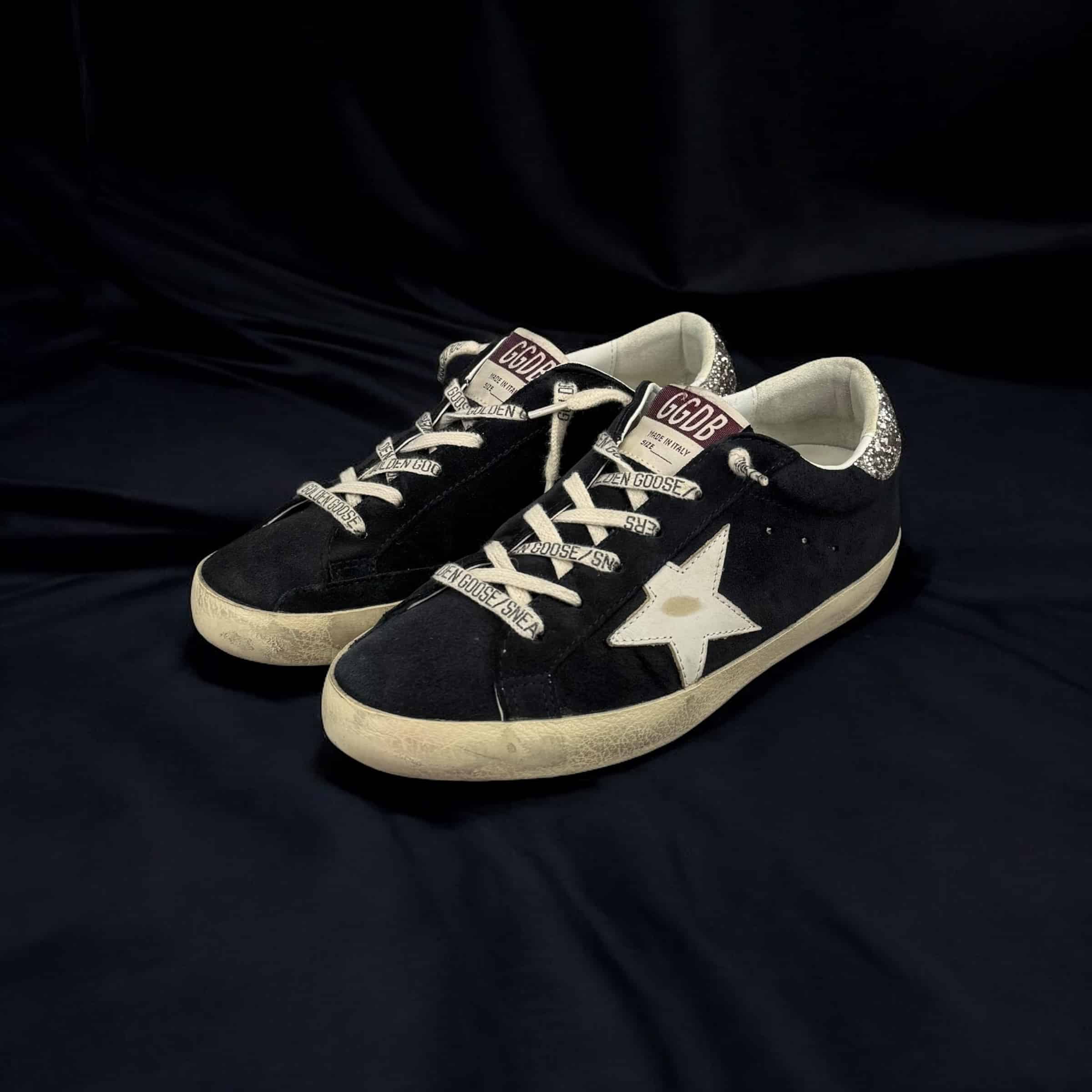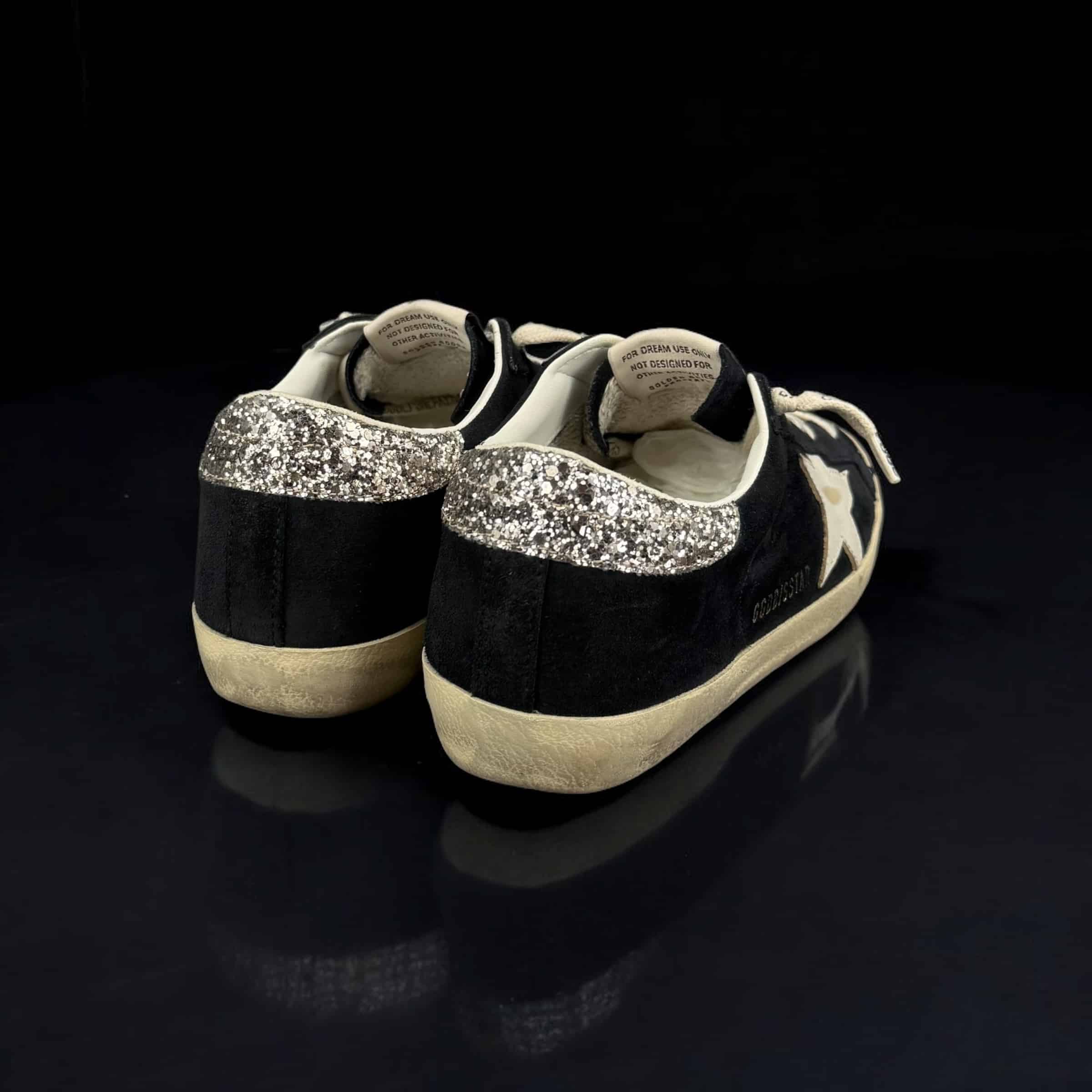 V10414 Golden Goose Superstar Noir/Blanc/Argenté/Paillette 36