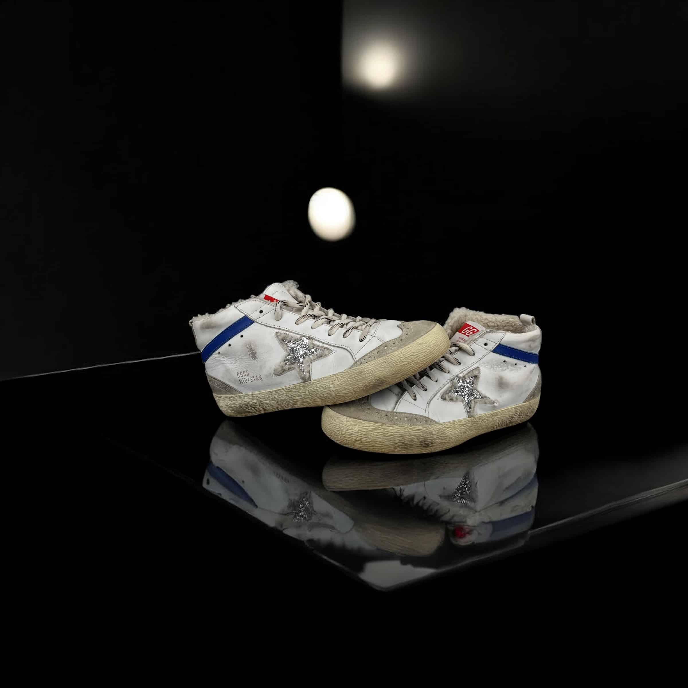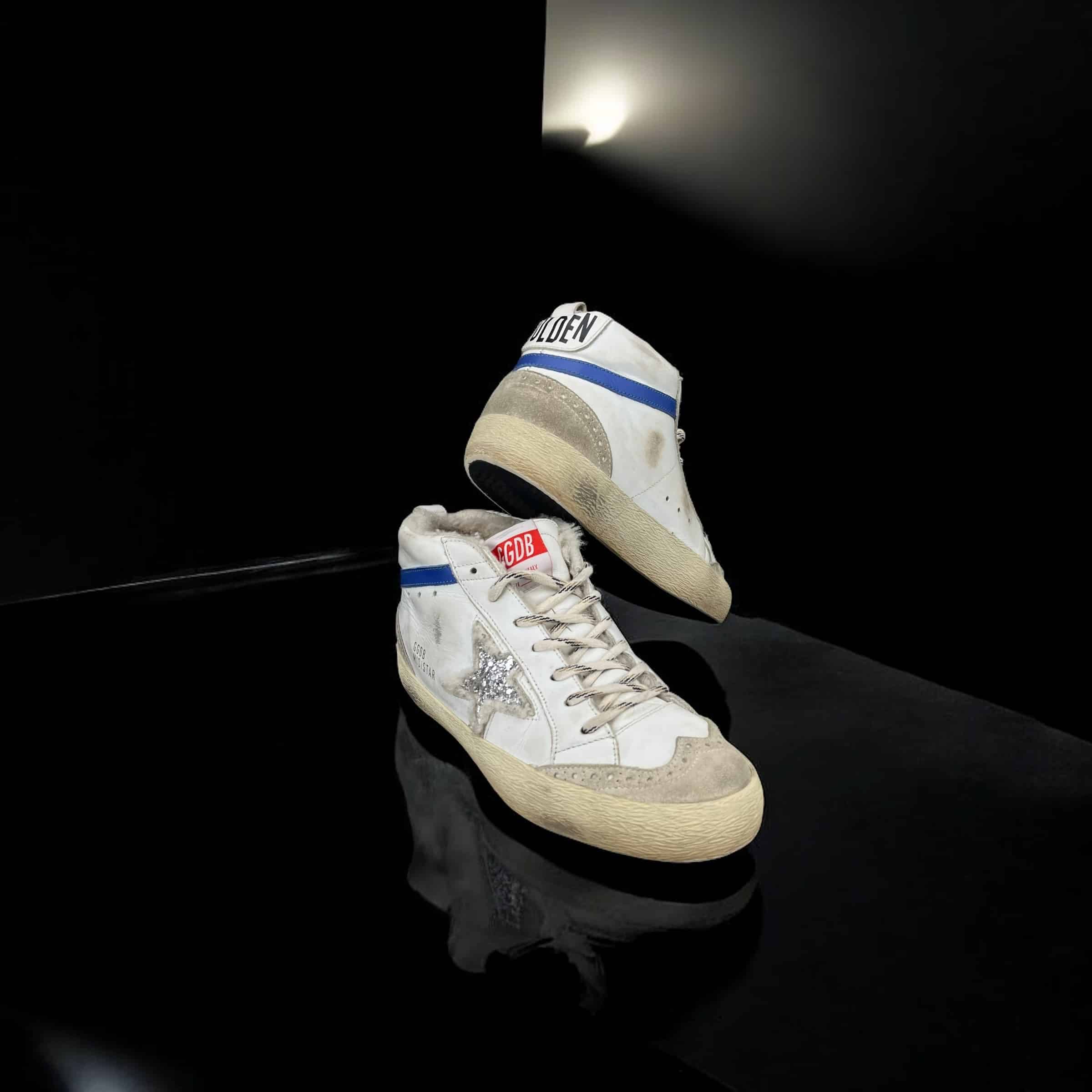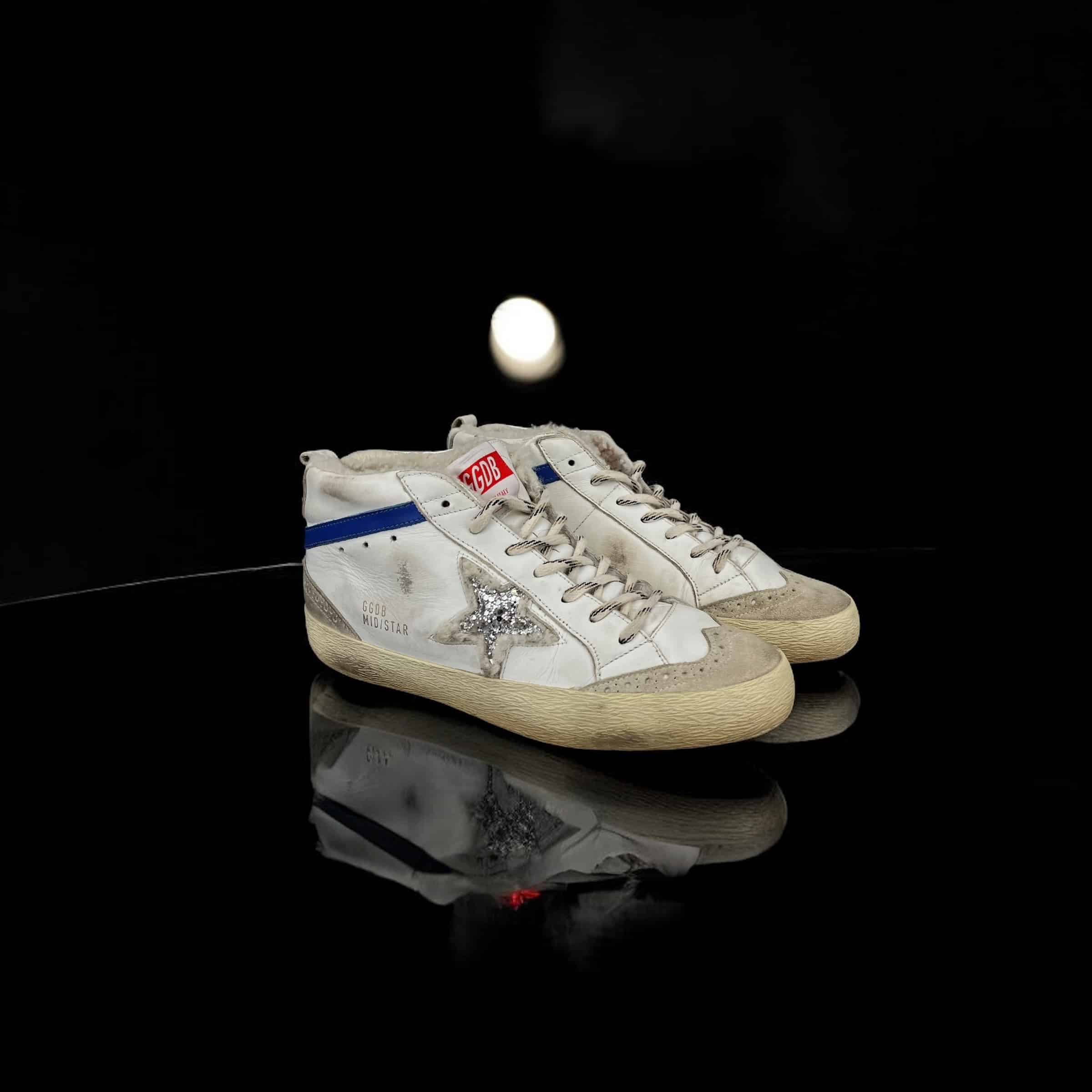 10053 Golden Goose Mid star blanc/bleu/argent/fourrure 39