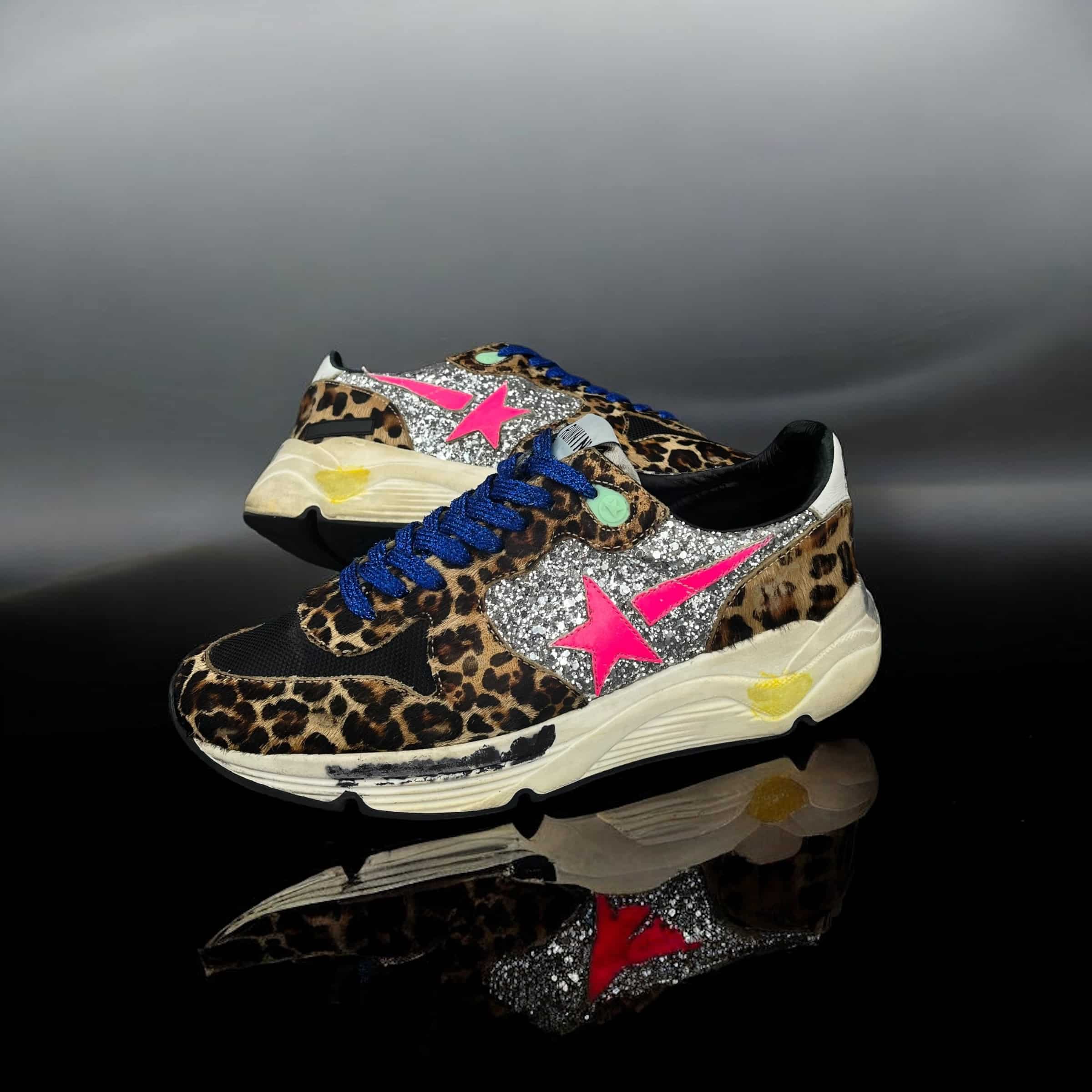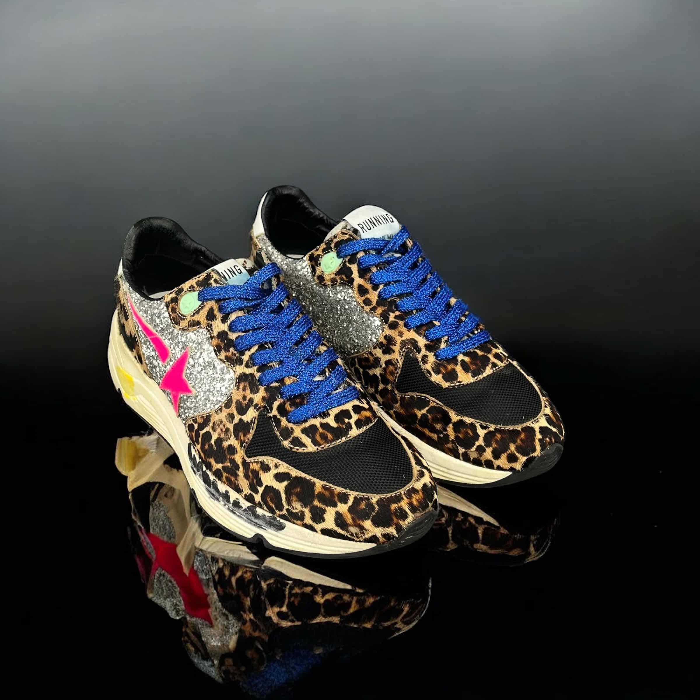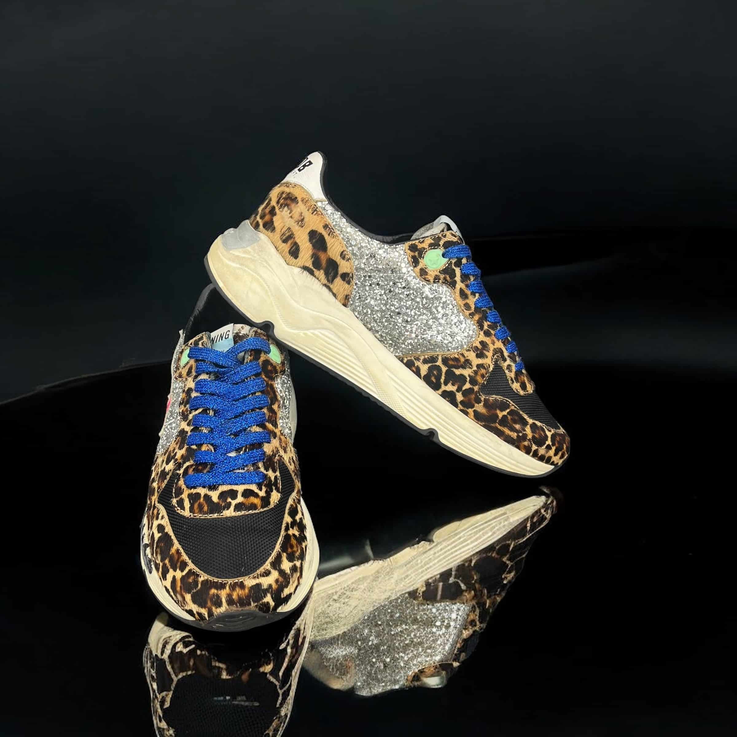 10188 Golden Goose Running Noir/Léopard/Bleu/Paillettes 38