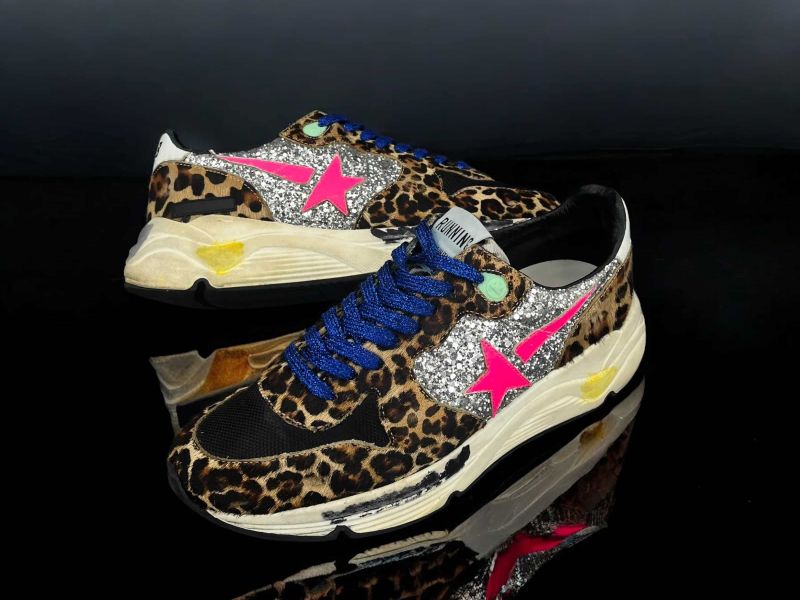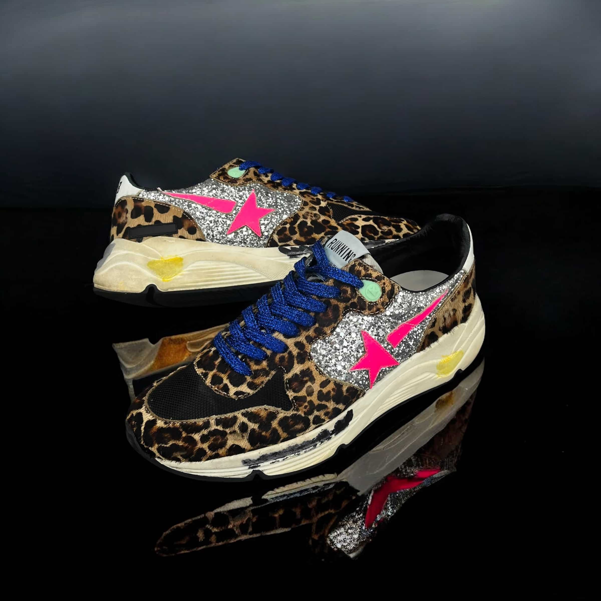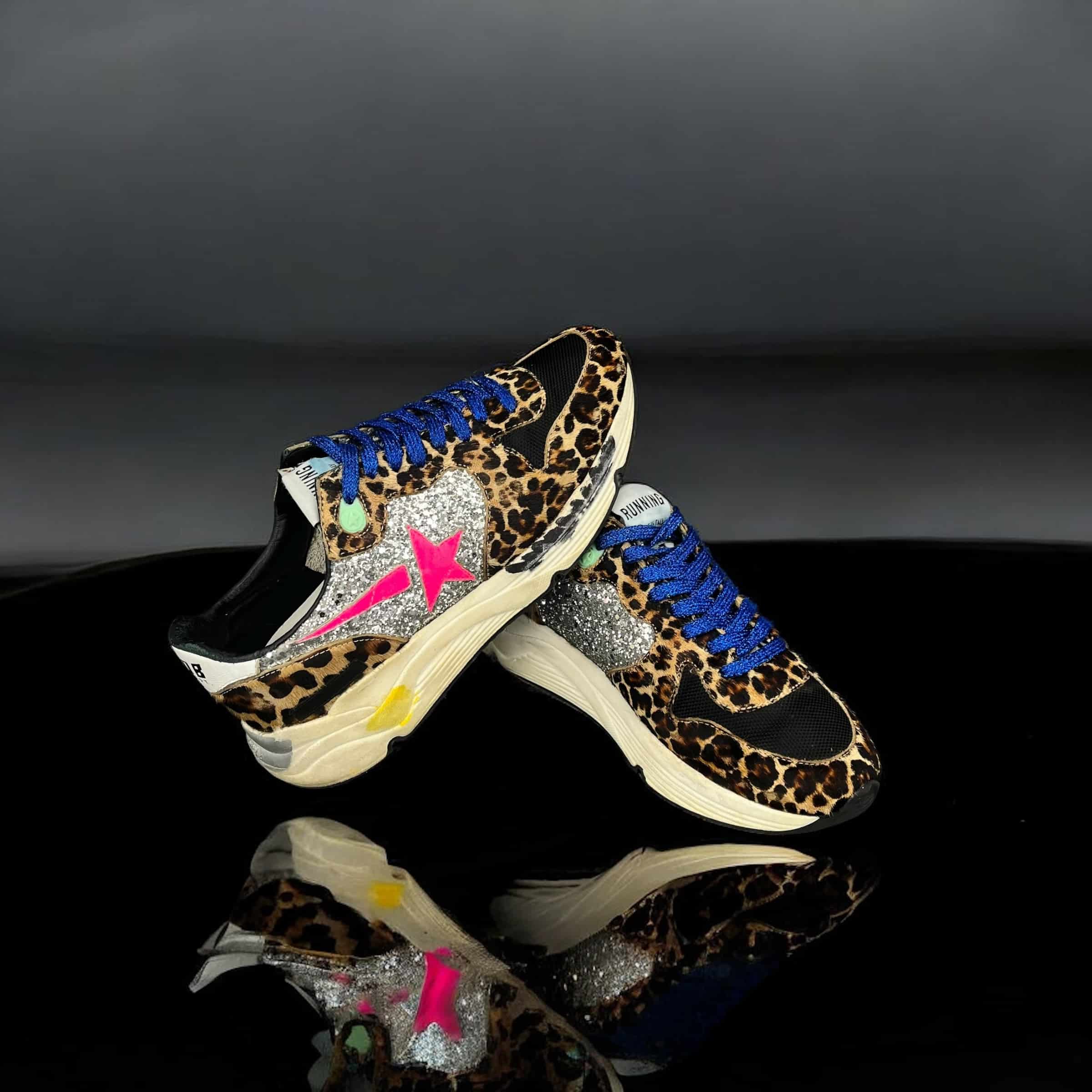 10188 Golden Goose Running Noir/Léopard/Bleu/Paillettes 38