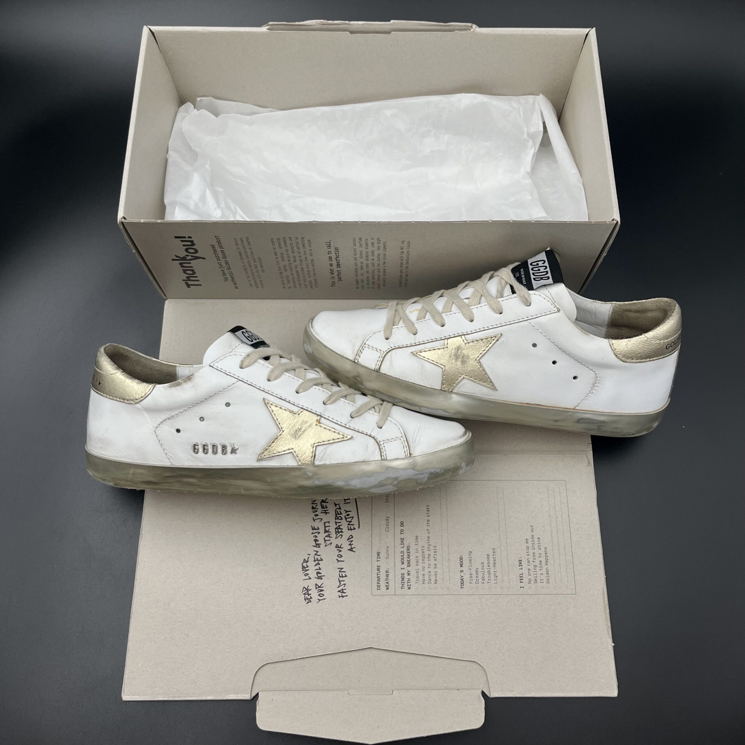 Les sneakers Golden Goose se distinguent par leur esthétique décontractée et leur effet vieilli unique, qui leur confèrent un caractère distinctif et un charme authentique. Chaque paire est confectionnée avec soin en Italie, mêlant savoir-faire artisanal et style casual chic. Idéales pour apporter une touche de nonchalance sophistiquée à vos tenues, elles s’adressent aux amateurs de mode qui recherchent à la fois confort, qualité et originalité.