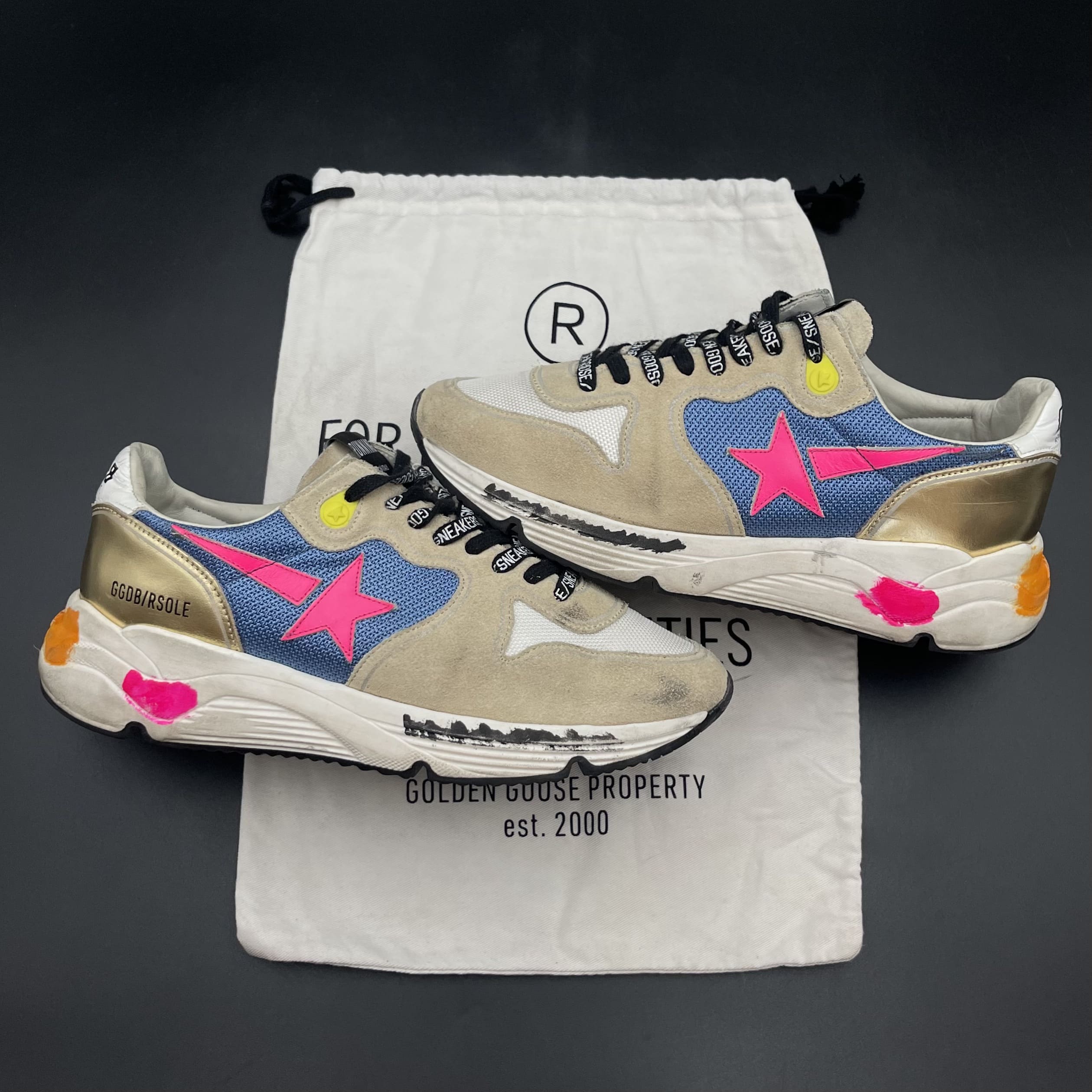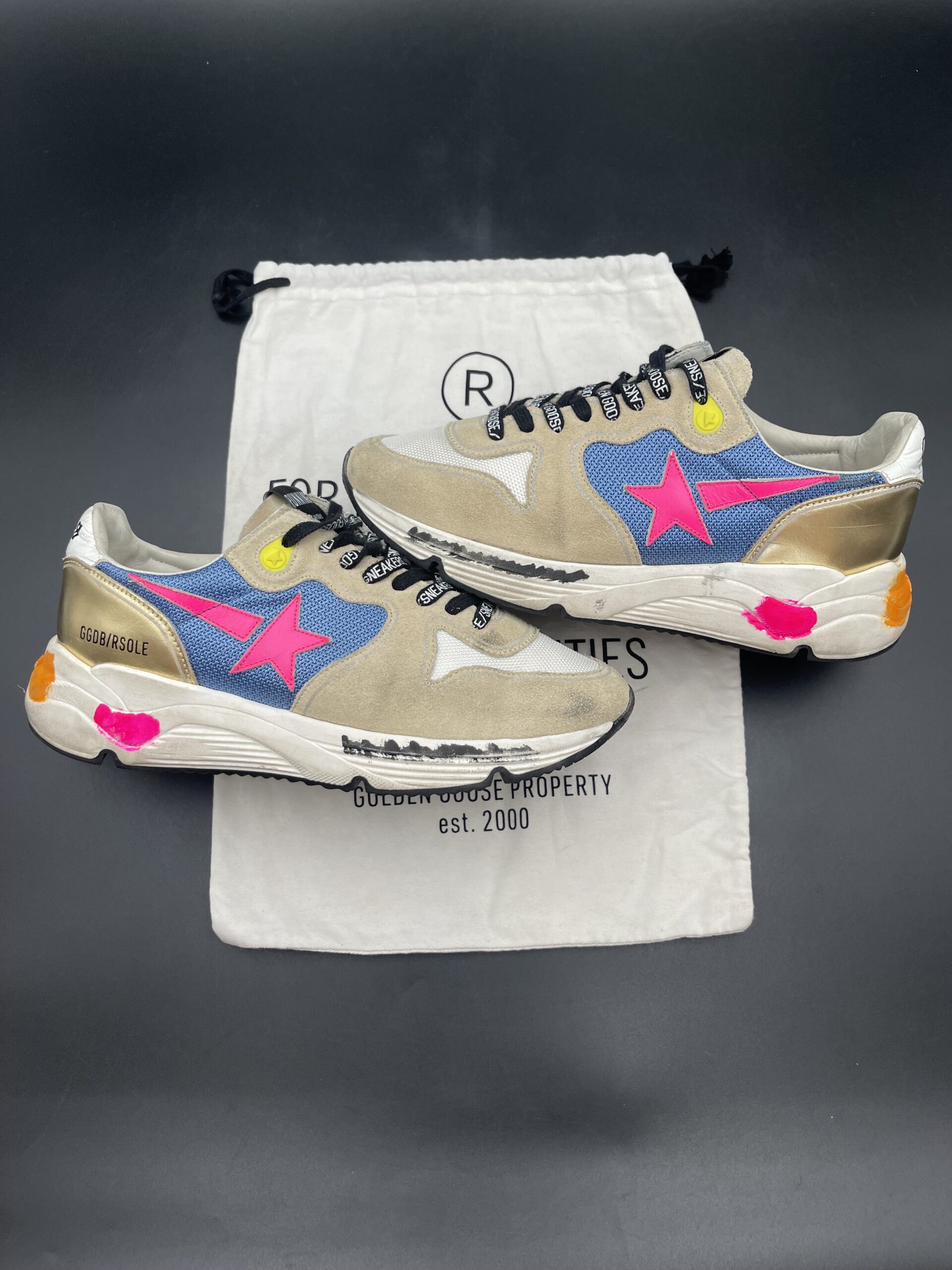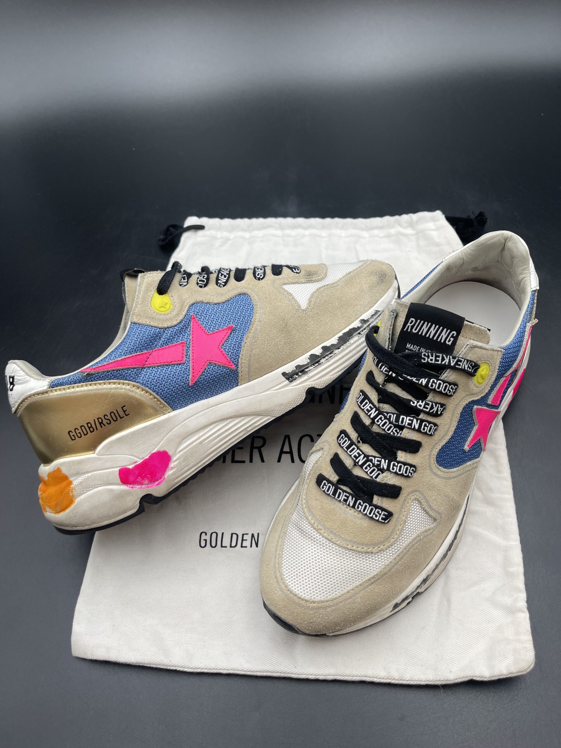 Les sneakers Golden Goose se distinguent par leur esthétique décontractée et leur effet vieilli unique, qui leur confèrent un caractère distinctif et un charme authentique. Chaque paire est confectionnée avec soin en Italie, mêlant savoir-faire artisanal et style casual chic. Idéales pour apporter une touche de nonchalance sophistiquée à vos tenues, elles s’adressent aux amateurs de mode qui recherchent à la fois confort, qualité et originalité.