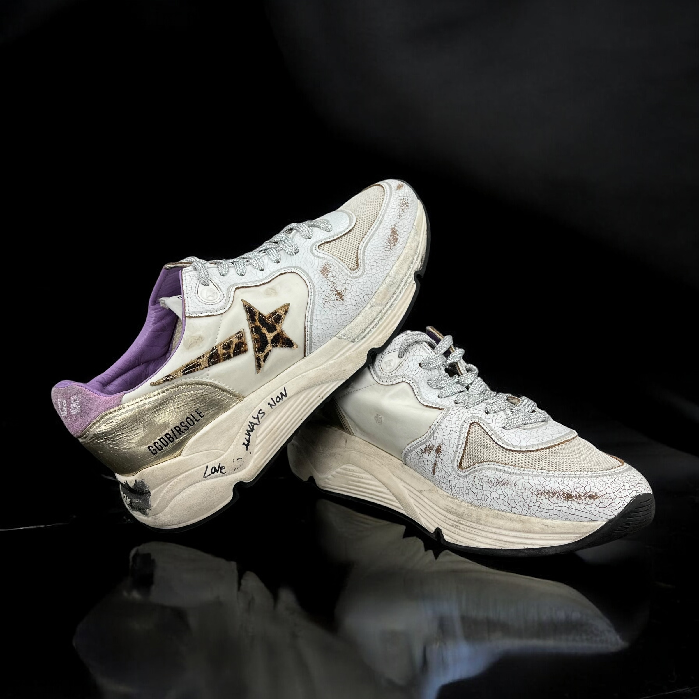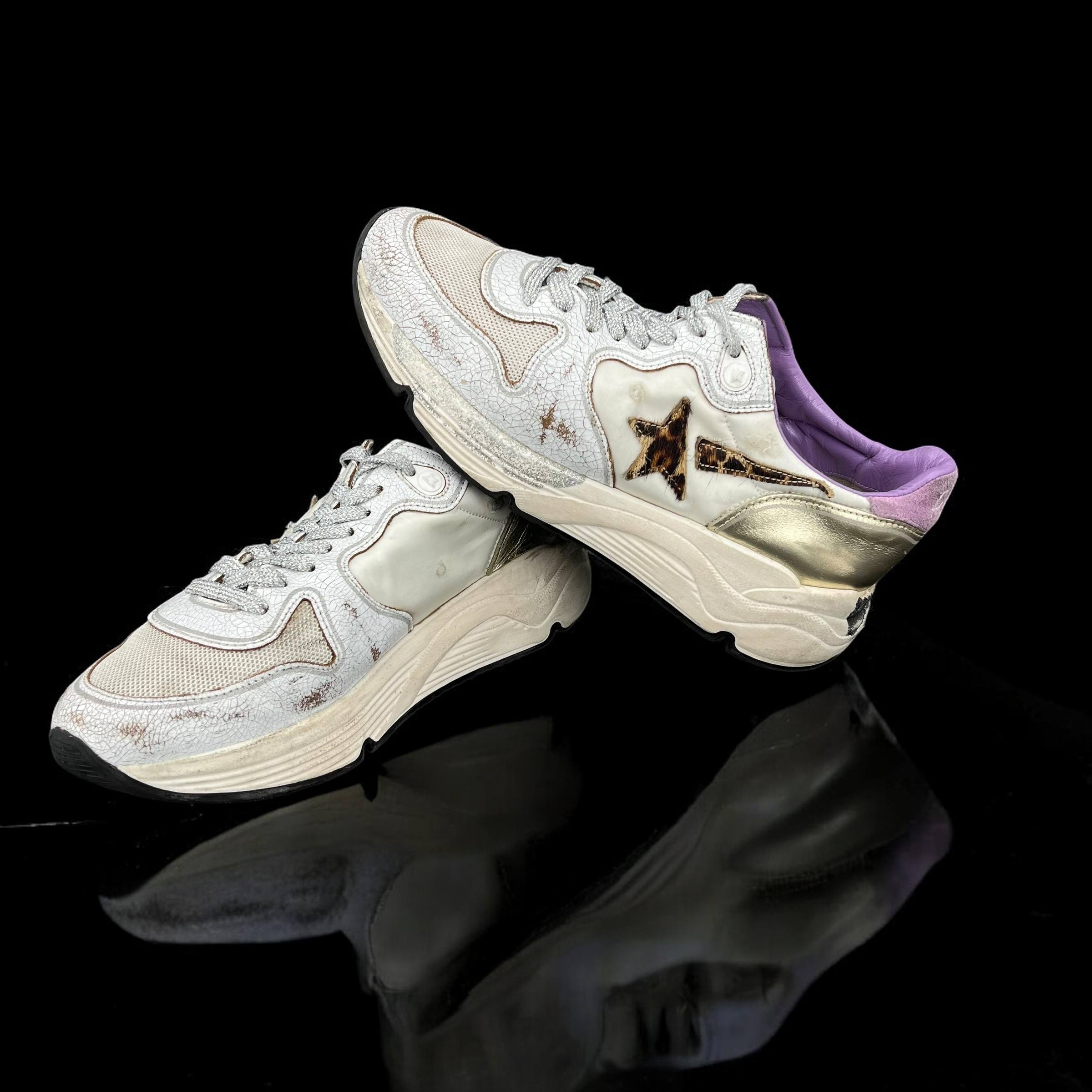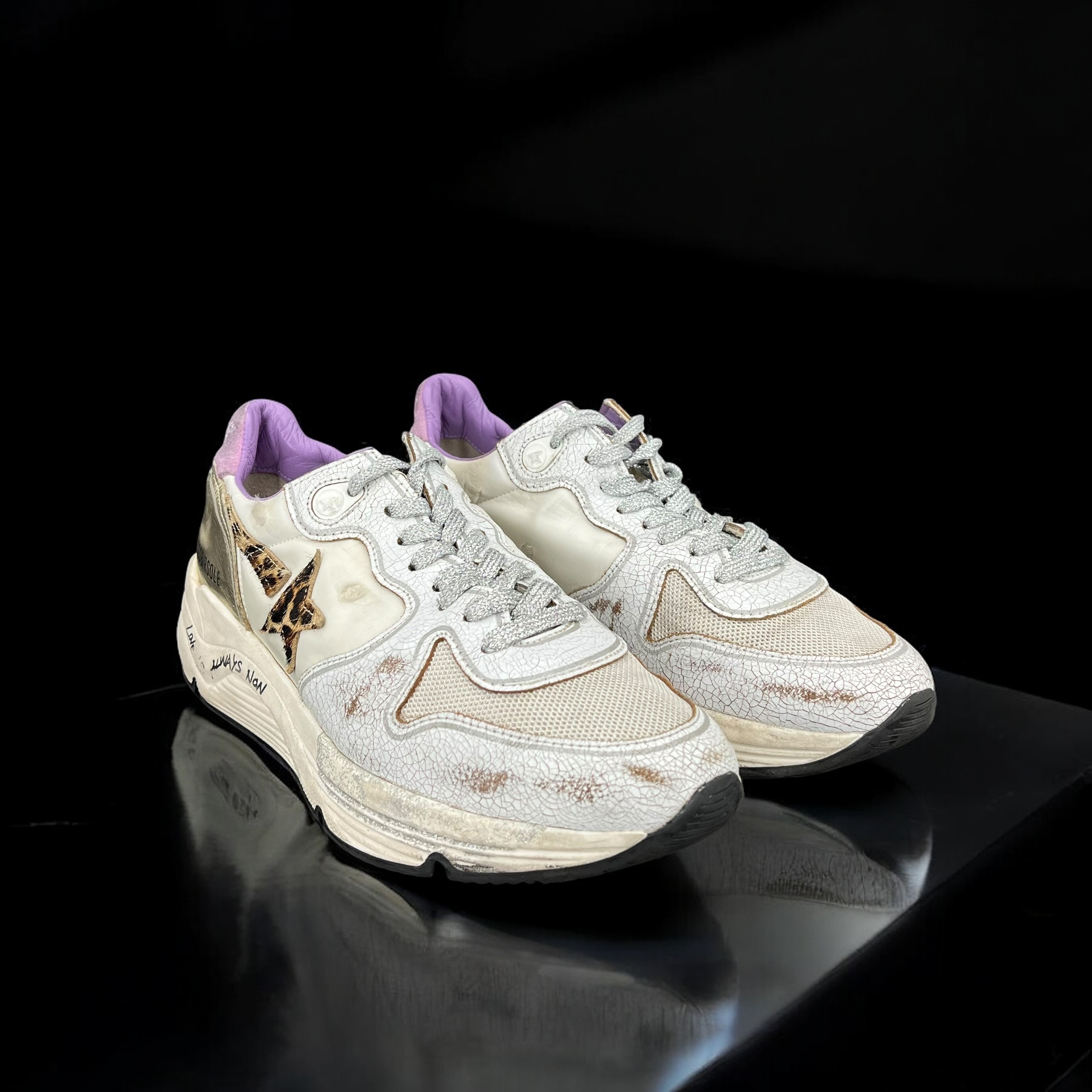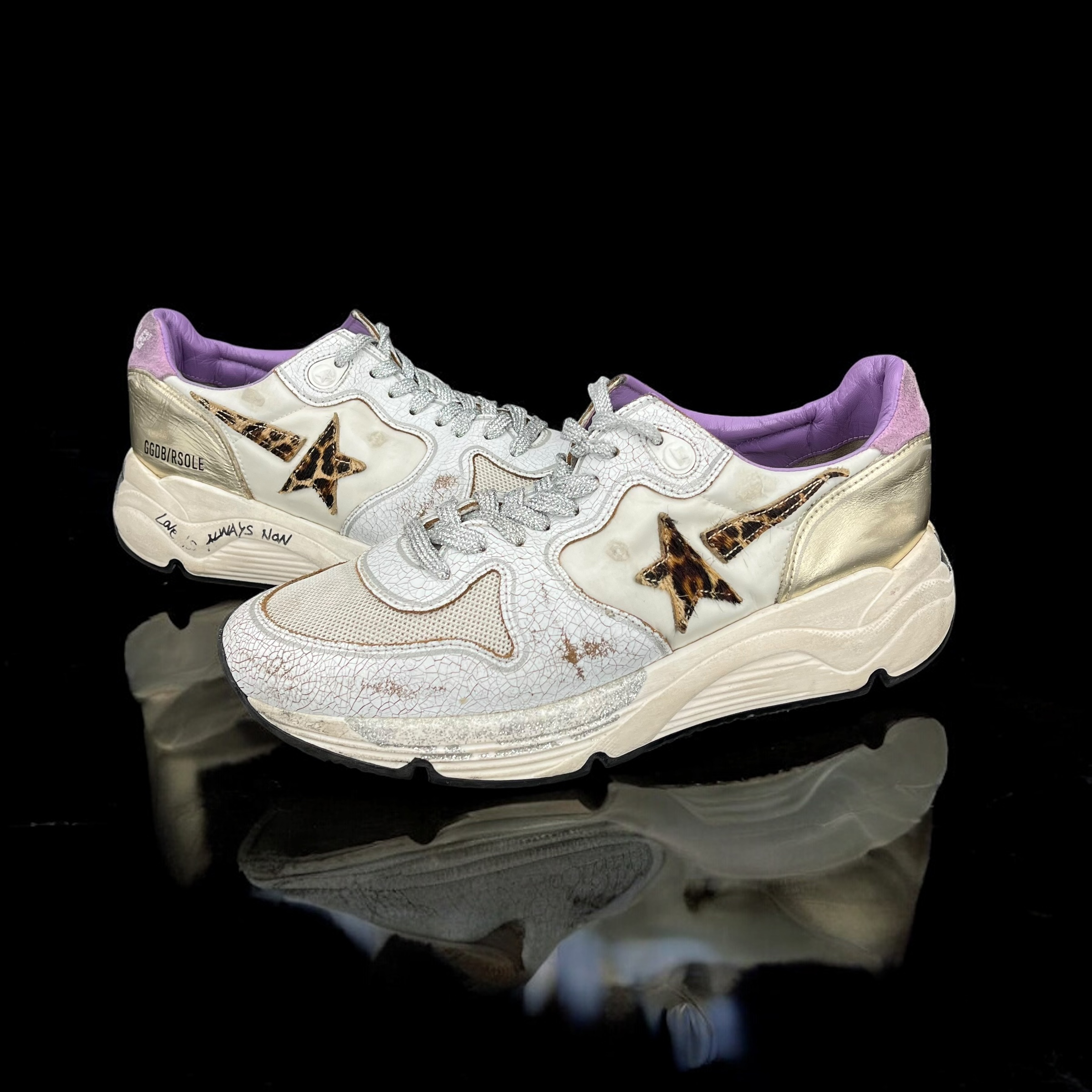 7990 Golden Goose Running Blanc/Léopard/Violet 38
