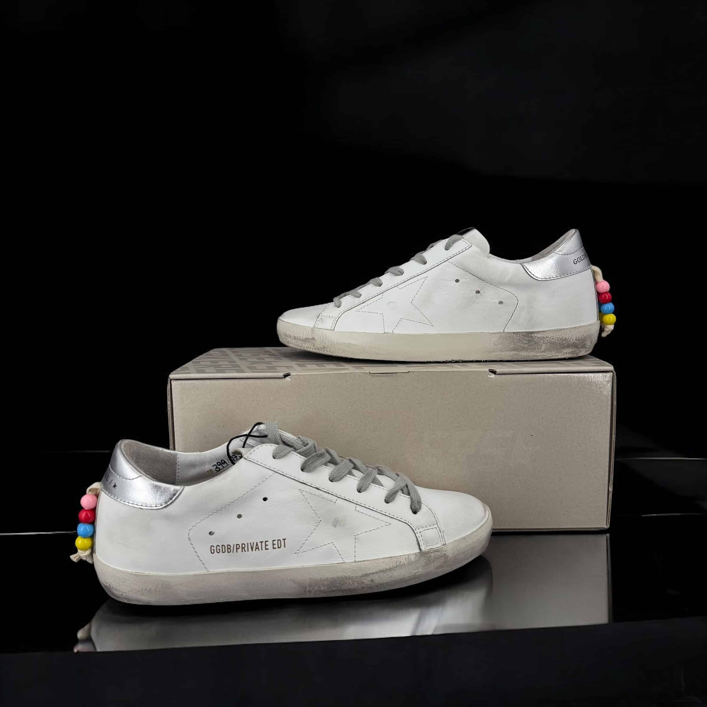 9201 Golden Goose Superstar blanche/ argent/ grigri multicolore 39
