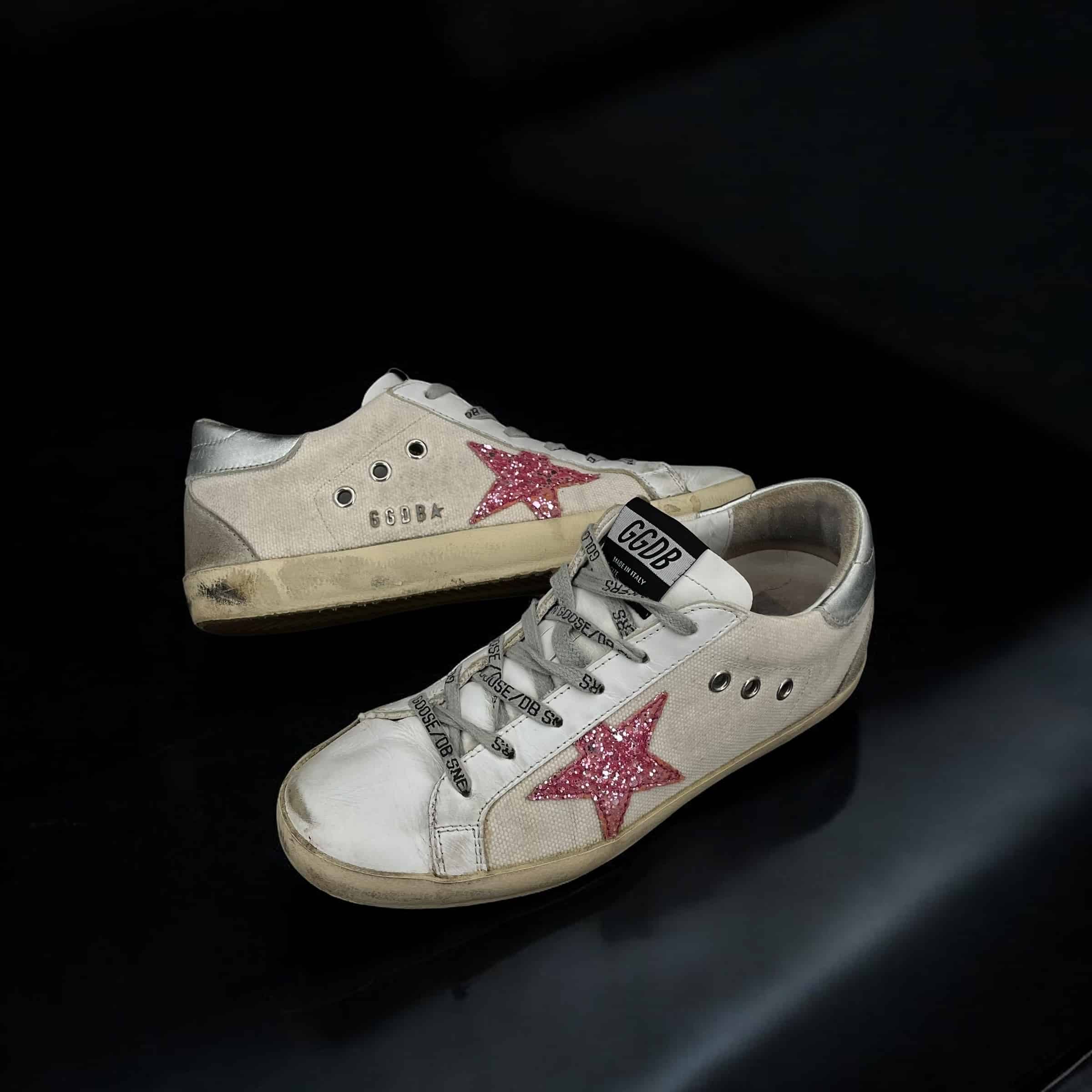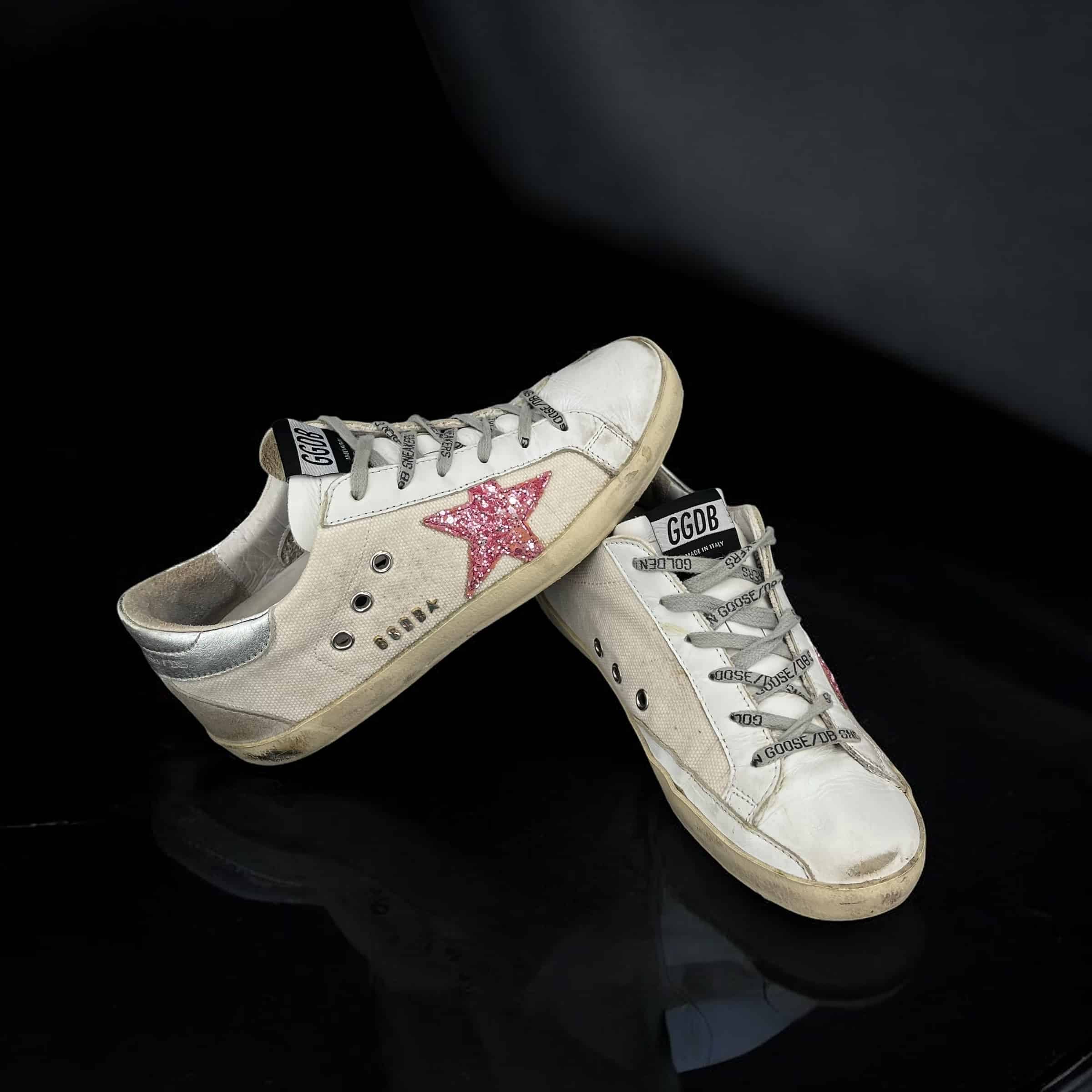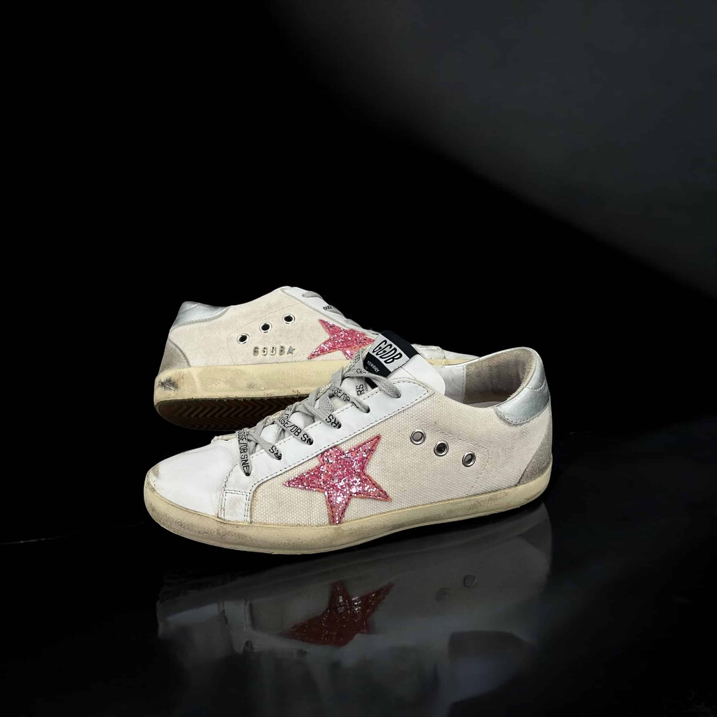 8330 Golden Goose Superstar blanche/rose paillette/argent 37