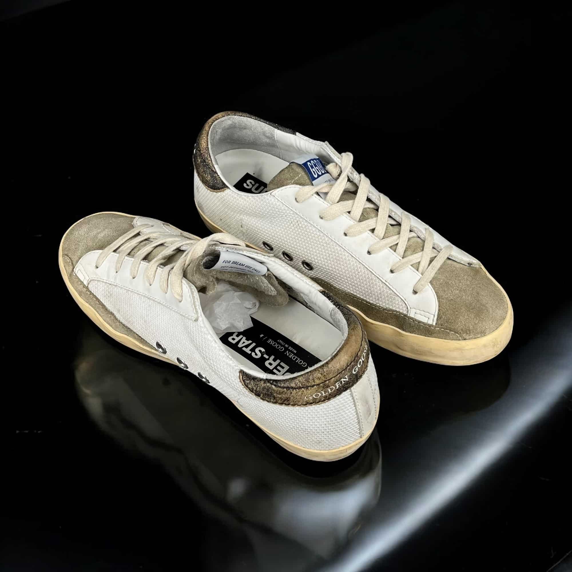 Les sneakers Golden Goose se distinguent par leur esthétique décontractée et leur effet vieilli unique, qui leur confèrent un caractère distinctif et un charme authentique. Chaque paire est confectionnée avec soin en Italie, mêlant savoir-faire artisanal et style casual chic. Idéales pour apporter une touche de nonchalance sophistiquée à vos tenues, elles s’adressent aux amateurs de mode qui recherchent à la fois confort, qualité et originalité.